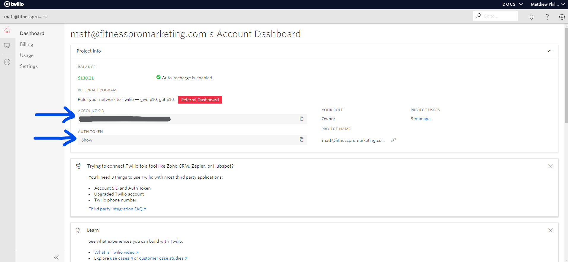 - Your Auth Token.